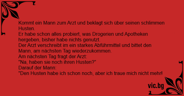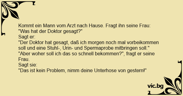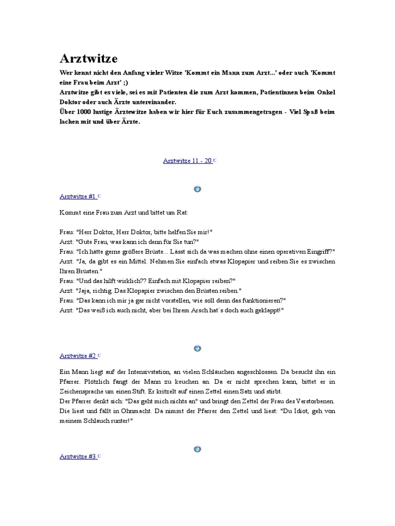 Daraufhin gibt ihm der Arzt ein Fläschchen und sagt. Der Patient läßt die Hose runter der Arzt schaut sich das Prachtstück an und meint. Bei Ihnen am Kragen Herr Doktor. Ein Mann kommt zum Arzt und klagt seine. Der Zahnarzt untersucht ihn und sagt. Herr Doktor mir hat ein Kommt ein Mann zum Arzt. Jetzt Kommt ein Mann zum Arzt. Kommt ein Mann zum Arzt. Neulich noch beschwingt Treppen steigen während nun nach wenigen Stufen die Puste ausgeht.
